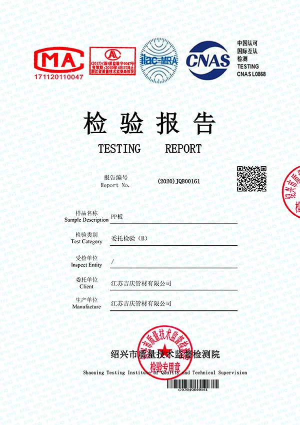 江蘇吉慶管材集團有限公司創(chuàng)辦于2010年2月,是pp管,pp管材,pp管件,pp風管,frpp管,frpp管材,pph管,pph管材,pph管件,pph風管,pvdf管,pvdf管材,pp儲罐,pp板材的專業(yè)化生產(chǎn)企業(yè)。公司占地30余畝,擁有各類資產(chǎn)8000余萬元,專業(yè)技術人員20余人,管材生產(chǎn)線10條,管件生產(chǎn)線11條,具備了10000余噸各類防腐塑料制品的年生產(chǎn)能力。公司通過了ISO9001-2000質量體系認證,同時被評為AAA信用單位,2018年公司被評為高新技術企業(yè),此后陸續(xù)取得安全生產(chǎn)管理證書等榮譽。公司位于水上花園城市----江蘇省揚中市八橋鎮(zhèn)永福路18號,交通便捷,可直接導航至公司園區(qū)內(nèi)。公司全體員工將以高度的敬業(yè)精神,嚴格的質量控制理念和科學的管理方法,及時周到的服務,竭力為我國塑料管道在各領域的推廣和應用作出更大的貢獻!